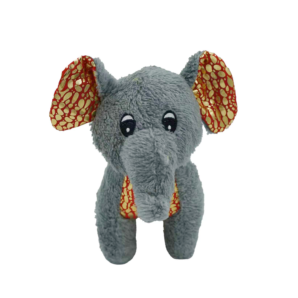 Gray Elephant Plushie with Red and Gold Pattern Ears