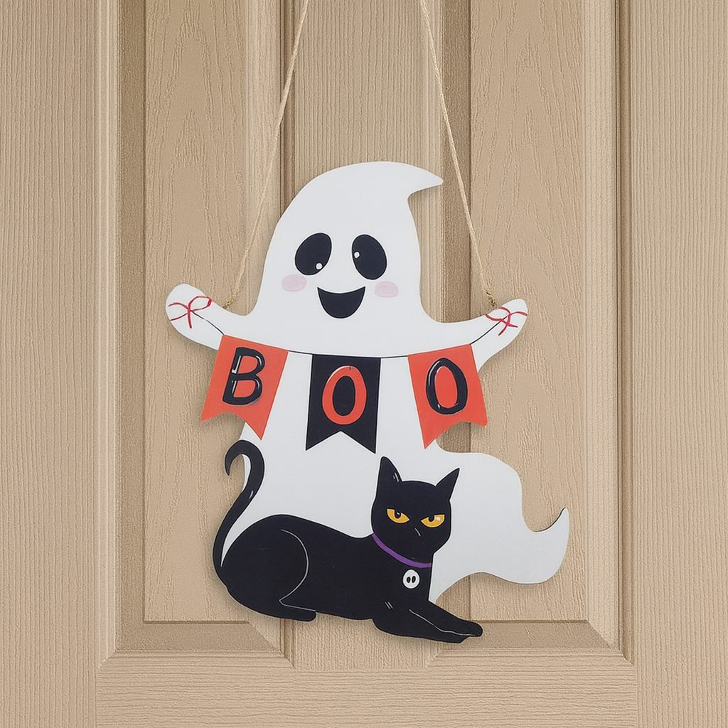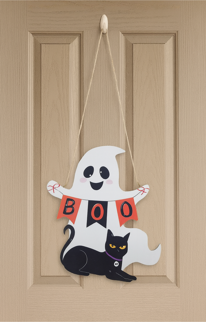 Boo! Door Decor with Cute Ghost and Black Cat