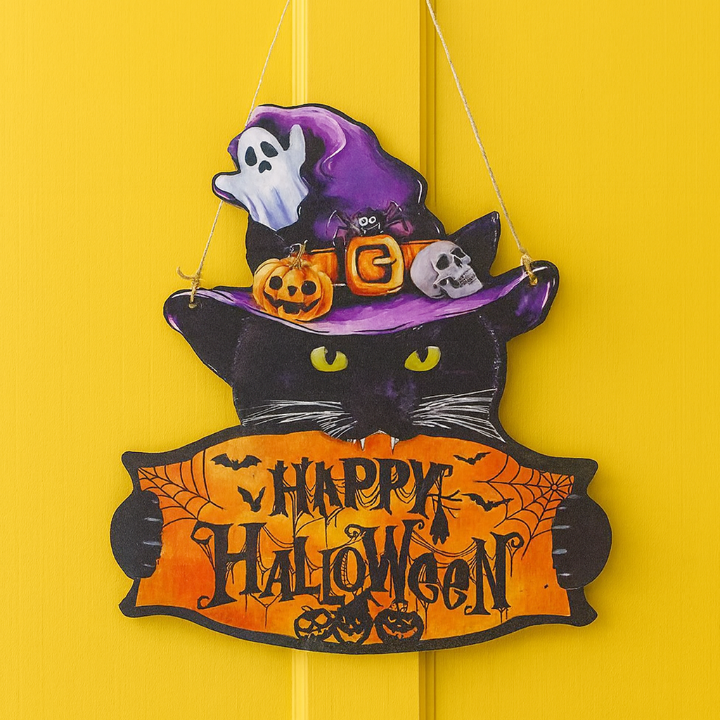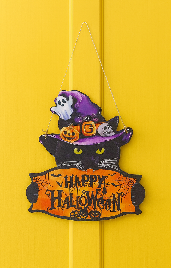 Happy Halloween Black Cat Door Decor