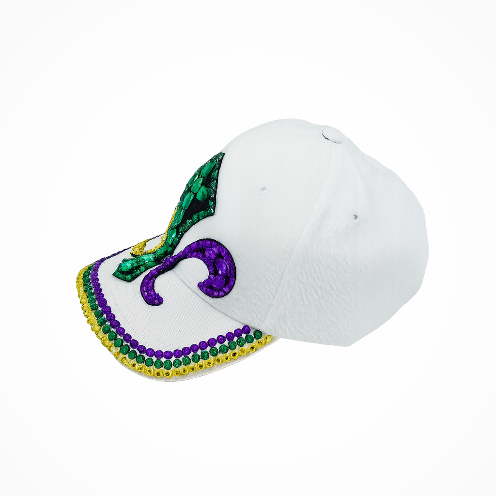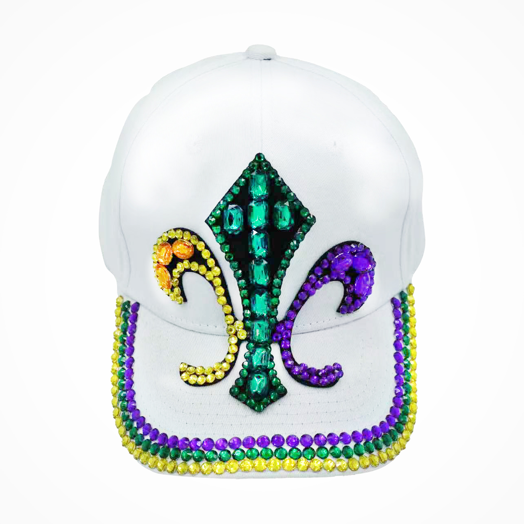 White Fleur-de-lis Mardi Gras Hat with Colorful Gems