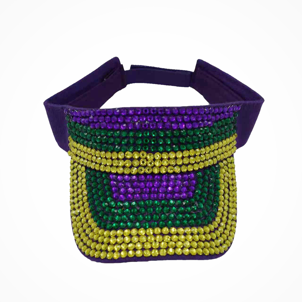 Purple Fleur-de-lis Mardi Gras Hat with Colorful Gems