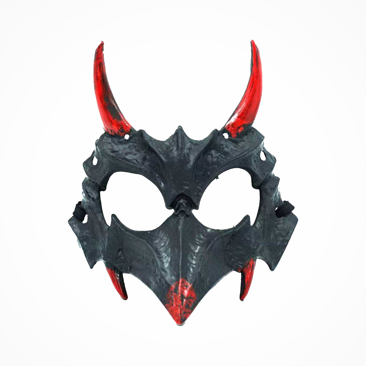 Ignite the night with this Halloween mask, boasting fierce red horns and a pointy red nose—perfect for unleashing a devilishly fun scare with every twist!