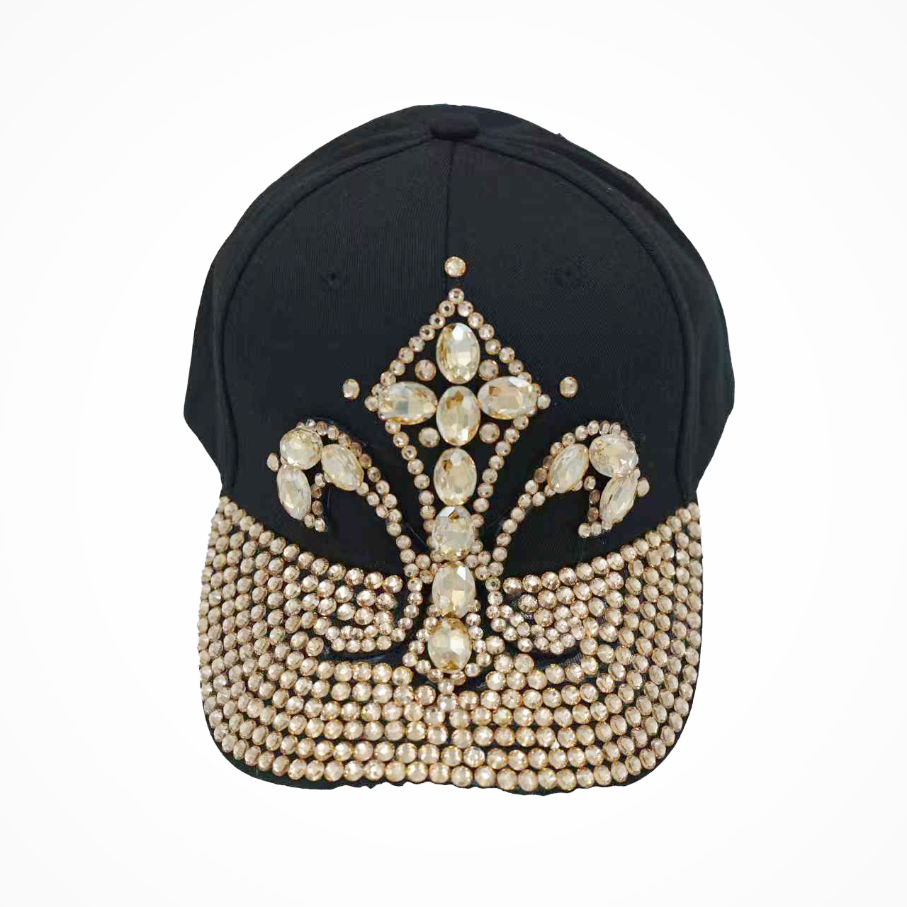 Rock this dazzling hat with a fleur-de-lis design in Saints' black and gold gems—perfect for cheering the team or grabbing as a New Orleans souvenir with sparkling flair!